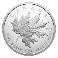 Designed and sculpted by Senior Engraver Stan Witten, the coin’s reverse features a pleasing arrangement of three sugar maple (Acer saccharum) leaves. Gently overlapping, the leaves are tilted towards the right to convey movement, as though the leaves are falling or have just landed on the ground, while still allowing a clear view of their intricate vein pattern. The obverse features the effigy of His Majesty King Charles III by Canadian artist Steven Rosati.