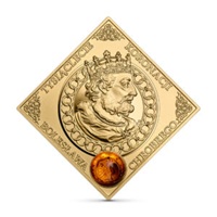 The 500 PLN coin is made of 999.9 fine gold, has dimensions of 40.00×40.00 mm and a weight of 62.20 g. Its mintage is up to 1025 pieces. The coin was made with a mirror finish and decorated with an amber insert.