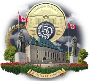 On April 8, the Royal Canadian Mint issued a $1 circulation coin commemorating the 150th anniversary of the Supreme Court of Canada. In honour of the 150th anniversary of the Supreme Court of Canada, the new $1 circulation coin serves as a shining tribute to its unwavering dedication to the rule of law, and its service to Canadians—past, present, and future.