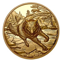 Teamwork, persistence and adaptability—these are the traits that assure a wolf pack’s survival, and they have helped cement the grey wolf’s reputation as one of the Great Hunters. Unlike ambush predators such as the cougar (Coin #2 in this series), the grey wolf (Coin #3) is a pursuit predator, capable of chasing its prey over long distances and adjusting its tactics as circumstances change. The hunt itself is a coordinated group effort, as illustrated from the prey’s perspective on this 99.99% pure gold Ultra High Relief (UHR) coin, with each pack member contributing to a common goal—an inspiring example of the complexity and wonder of the Canadian wilderness.