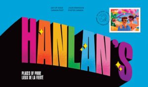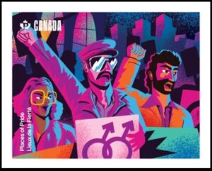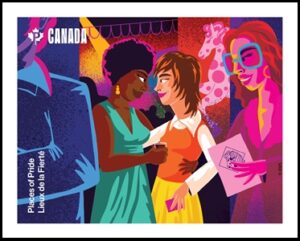 About the issue … These stamps recognize four vital places for 2SLGBTQIA+ in Canada, from early meeting spots to safe spaces for community organizing. These spaces were often the backdrop to pivotal demonstrations and hosted events that shaped 2SLGBTQIA+ communities across the country.
