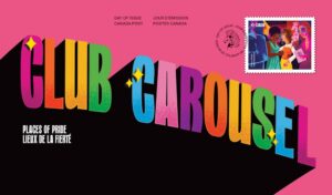 2025 Places of Pride: Club Carousel – Official First Day Cover … About Club Carousel … Places of Pride takes us to sites across Canada that 2SLGBTQIA+ people fought to make their own – places of celebration and freedom such as Club Carousel, considered Calgary’s first known gay bar. A formative queer space for Calgary, Club Carousel opened in 1970. The club’s goal was innovative and transformative – to be an openly gay space for queer people in Calgary. Members of the local gay community worked together to acquire, clean and repair the space. Lesbians were founding members of the club, alongside gay men, which was significant for the times. The club’s lesbian-edited newsletter, Carousel Capers, informed members about events happening throughout the Prairies and featured relevant news, as well as poetry and fiction.