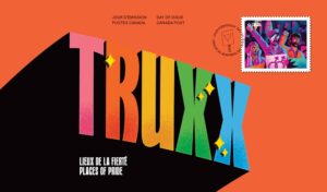 2025 Places of Pride: Truxx – Official First Day Cover … About Truxx … Places of Pride takes us to sites across Canada that 2SLGBTQIA+ people fought to make their own – places of celebration and freedom such as Truxx, a gay bar in Montréal. To “clean up” Montréal in preparation for the 1976 Olympic Games, authorities increased the number of raids on gay and lesbian meeting places. These operations continued even after the Games. On the night of October 21-22, 1977, some 50 armed police officers raided Truxx. More than 100 men were arrested that night for being found in a common bawdy house, making it the largest mass arrest since the October Crisis in 1970.