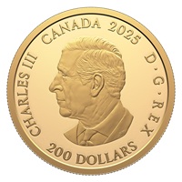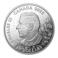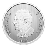 Your coin’s reverse features a magnified view of a fernlike stellar dendrite captured by Canadian photographer Don Komarechka and intricately reproduced by Royal Canadian Mint engravers. The brilliant relief re-creates its intricate form, its delicate subbranches (or arms) extending outwards and resembling the branches of a fern, while the green crystal at its centre evokes the majesty of the lush evergreens that add colour to a winter landscape. The obverse features the effigy of His Majesty King Charles III by Steven Rosati.