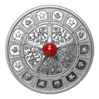 Face Value: $20 … Composition: 99.99% pure silver with simulated Italian red coral; Mintage: 5,500; Weight: 31.39 g; Diameter: 38 mm; Edge: Serrated; Finish: Proof; Artist: Tony Bianco (reverse), Steven Rosati (obverse); Packaging: Black clamshell with black beauty box.