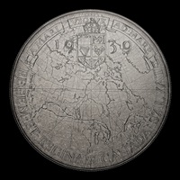 Your coin’s reverse is an engraved representation of artist Emanuel Hahn’s hand-drawn concept for the 1939 Royal Visit medallion. Marked by the paper fold lines of the original pencil sketch residing in the National Currency Collection of the Bank of Canada, the reverse design shows a map of Canada that traces the route followed by King George VI and Queen Elizabeth during their visit in 1939. At the top is a ribbon bearing “A MARI VSQUE AD MARE” (“From Sea to Sea”), Canada’s official motto, while the Arms of Canada shield is flanked by the year “1939”. The reverse re-creates the perspective lines and other preliminary graphic elements drawn by the artist, including the lettering guidelines surrounding “REGEM-ET-REGINAM-CANADA-SALVAT”, an erroneous Latin inscription that was later corrected to “REGEM-ET-REGINAM-CANADA-SALVTAT” (“Canada salutes the King and Queen”). The obverse features the effigy of King George VI by Thomas Humphrey Paget.