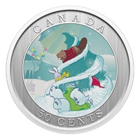 Enhanced with lenticular technology to create the illusion of motion, the coin’s reverse features a joyous and carefree winter scene designed by illustrator Emily Chen. Churchill the polar bear, the Toonie’s ($2 coin) mascot, is seen sliding down and around a tree with two friends – a beaver (top) and a rabbit (middle) – while a caribou grazes in the background. When the coin is tilted, a second image is revealed as the fun intensifies: the beaver is sliding down on his tummy, the rabbit is gliding around the swaying tree, and Churchill’s fast descent has caused him to lose his toque. The obverse features the effigy of His Majesty King Charles III by Canadian artist Steven Rosati.