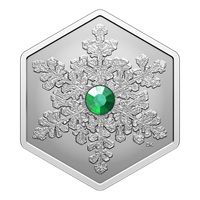 Face Value: $20 … Composition: 99.99% pure silver with a green crystal; Mintage: 7,500; Weight: 32.41 g; Diameter: 42 mm; Edge: Plain; Finish: Reverse Proof; Artist: Don Komarechka (reverse), Steven Rosati (obverse); Packaging: Black clamshell with graphic beauty box.