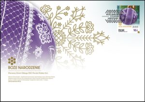 Issue date: 05-11-2025  (economic letter) … Polish Post introduces a new stamp issue titled “Christmas,” inspired by the unique Lower Silesian Pattern – a contemporary regional decorative motif that combines tradition with modernity. The stamps feature photographs of Christmas baubles decorated with designs derived from the cultural heritage of Lower Silesia. Below the baubles, the title of the issue “Christmas” and the inscription “Lower Silesian Pattern” are displayed. Along the bottom edge, the word “POLSKA” and the respective denominations appear: ECONOMIC S, PRIORITY S, and 10 PLN.  The issue is complemented by three FDC envelopes and two postmarks, whose graphics are entirely based on the concept of the Lower Silesian Pattern.