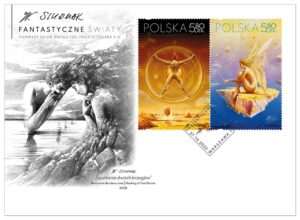 Data emisji: 27-10-2025 … W ramach wyjątkowej emisji Poczty Polskiej zaprezentowano blok filatelistyczny poświęcony twórczości Wojciecha Siudmaka – mistrza realizmu fantastycznego, którego dzieła łączą naukę, filozofię i sztukę w niezwykle sugestywnych, surrealistycznych kompozycjach.