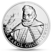 The reverses of the gold and silver coins feature an image of hetman Jan Karol Chodkiewicz and a fragment of a plan of the Battle of Chocim. Their obverses – apart from the regular elements such as the inscription: “Rzeczpospolita Polska”, year of issue, face value and the image of the Eagle established as the state emblem of the Republic of Poland – also bear the mace and the coat of arms of Jan Karol Chodkiewicz.