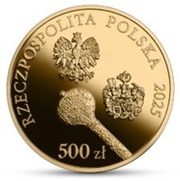 Nominał 500 zł … metal: Au 999,9/1000; stempel: lustrzany, wysoki relief; średnica: 32,00 mm; masa: 31,10 g; brzeg (bok): gładki; nakład: do 1000 szt.; Projektantka: Dobrochna Surajewska.
