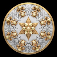 Face Value: $50 … Composition: 99.99% pure silver with selective yellow gold plating; Mintage: 1,250; Weight: 157.6 g; Diameter: 65.25 mm; Edge: Serrated; Finish: Proof; Artist: Ryan Poser (reverse), Steven Rosati (obverse); Packaging: Wood circular base with black beauty box.