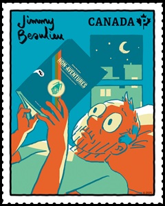 About the Graphic Novelists issue …  This set of six stamps – the second in a two-part series (the first was issued in 2024) – pays tribute to some of Canada’s most talented and influential graphic novelists – Kate Beaton, Jimmy Beaulieu, Guy Delisle, Julie Doucet, Bryan Lee O’Malley and Michael Nicoll Yahgulanaas. These stamps – featuring an acclaimed novel by each author – show the main characters engrossed in their own stories through original illustrations created exclusively for this issue.