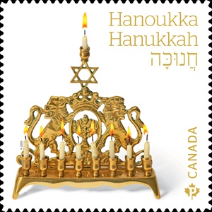 This booklet of six Permanent™ domestic rate stamps marks the Jewish festival of Hanukkah, one of the more widely embraced celebrations in the Jewish calendar. The Hanukkah stamp is one of several annual issues that mark events of importance to Canada’s culturally diverse population. The others include Eid, Diwali and Christmas.