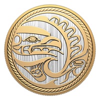 Designed by Kwakiutl artist Jason Hunt and rendered in the Northwest Coast form line style, the reverse depicts the Orca, guardian of the sea, hunting the Salmon by the light of the moon. To mimic the look of a carved Kwakiutl wood panel framed by cedar bark rope, the reverse and obverse both feature an engraved woodgrain texture and a rope along the rim. The obverse features the effigy of His Majesty King Charles III by Canadian artist Steven Rosati.