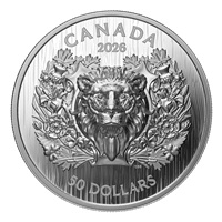 Another Canadian heraldic animal—this time, the lion—is reimagined in Extraordinarily High Relief. You won’t find a lion in the wilds of Canada, but the noble king of beasts holds a lofty place in Canadian heraldry. Displayed on both the crest and shield of the Coat of Arms of Canada, and as one of its supporters, the heraldic lion symbolizes both Canada’s sovereignty and our historic ties to the United Kingdom, while also embodying the virtues of bravery, courage and strength. The follow-up to 2025’s Heraldic Bear, this 99.99% pure silver coin presents a different take on the lion found in many official Canadian emblems. Reimagined in a heraldically stylized manner, the stately creature is depicted in a forward-facing pose and sculpted in Extraordinarily High Relief (EHR), while the wreath of floral emblems is engraved in Ultra High Relief (UHR), resulting in differing, eye-catching relief heights. Enjoy a fresh take on a heraldic creature found in many Canadian emblems.