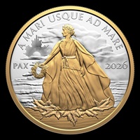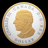 The reverse design by retired Royal Canadian Mint Senior Engraver Susan Taylor features a gold-plated, full-body portrait of Lady Peace, a personification of Peace (“PAX”). Inspired by the allegorical figure atop the National War Memorial in Ottawa, Lady Peace is dressed in a flowing robe and crowned with a wreath of maple leaves and olive branches expressing a core Canadian value of peace. Her serene countenance exudes poise, strength and quiet confidence as she extends her right arm, almost as if the peace wreath she holds is an offering to all. Lady Peace stands on the shoreline, which is similarly plated with yellow gold, and is supported by maple leaves that are symbolic of Canada. Canada’s motto, “A MARI USQUE AD MARE” (“From sea to sea”) appears in the sky above, where the sun’s rays break through the rain clouds and form the shape of a maple leaf. The rim on both sides of the coin is plated with yellow gold, while the obverse features the gold-plated effigy of His Majesty King Charles III by Canadian artist Steven Rosati.