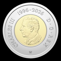 The reverse design by Canadian artist Brent Townsend features the classic image of an adult polar bear on an Arctic ice floe. Double-dated (“1996-2026”) to commemorate the 30th anniversary of Canada’s $2 coin, the obverse features the “W” mint mark of the Royal Canadian Mint’s Winnipeg facility and the effigy of His Majesty King Charles III by Canadian artist Steven Rosati.